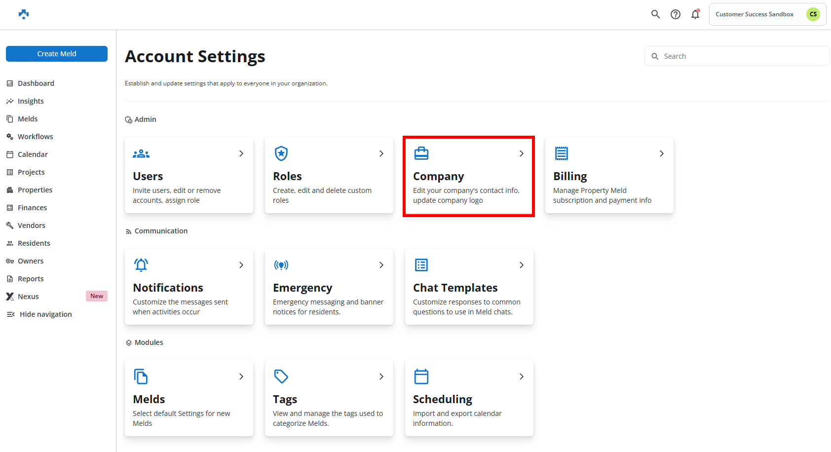 Click Company card to open Company Settings.