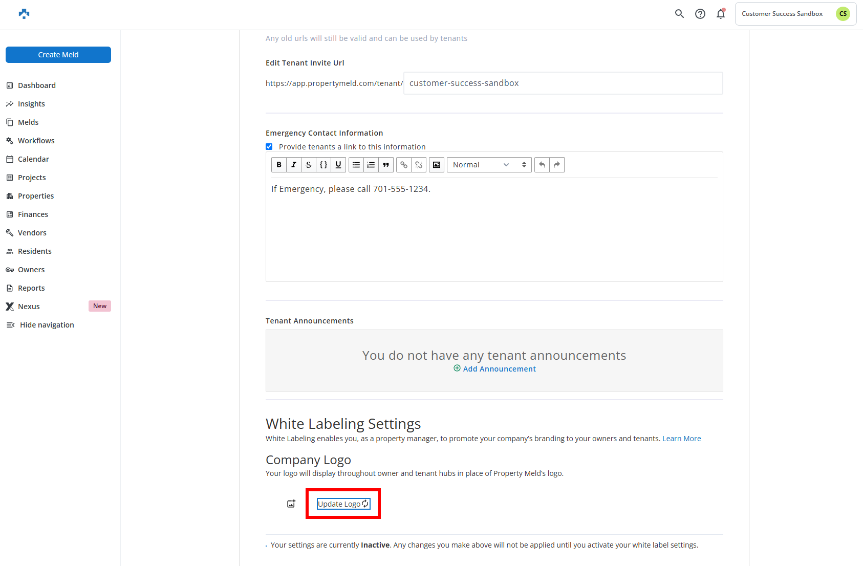 Click Update Logo to upload your logo for White Labeling.