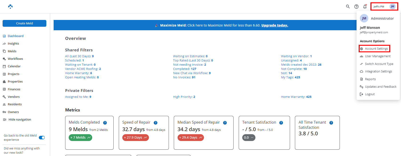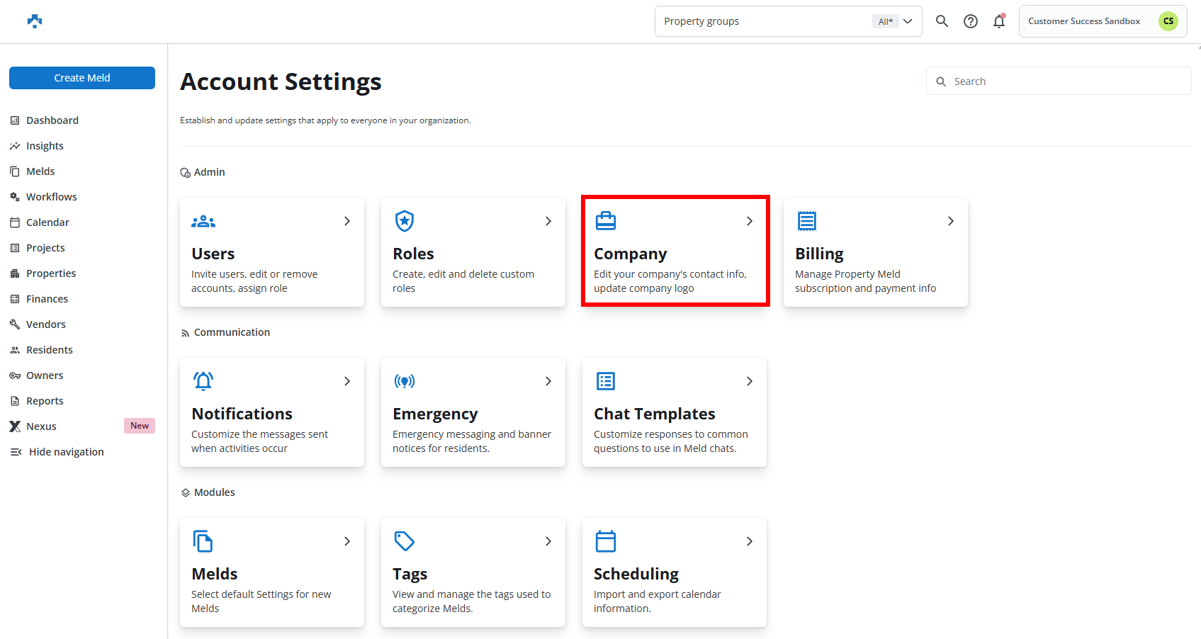 Click company name, then click Account Settings.