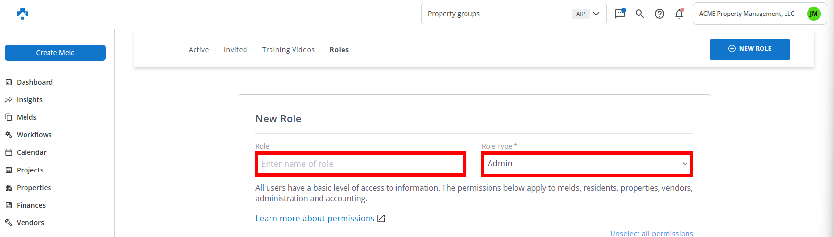 Property Meld has 3 default permissions: Admin, Agent, and Maintenance. These permissions typically work well for the majority of our customer base but we do provide the option for Custom Roles that are described below.