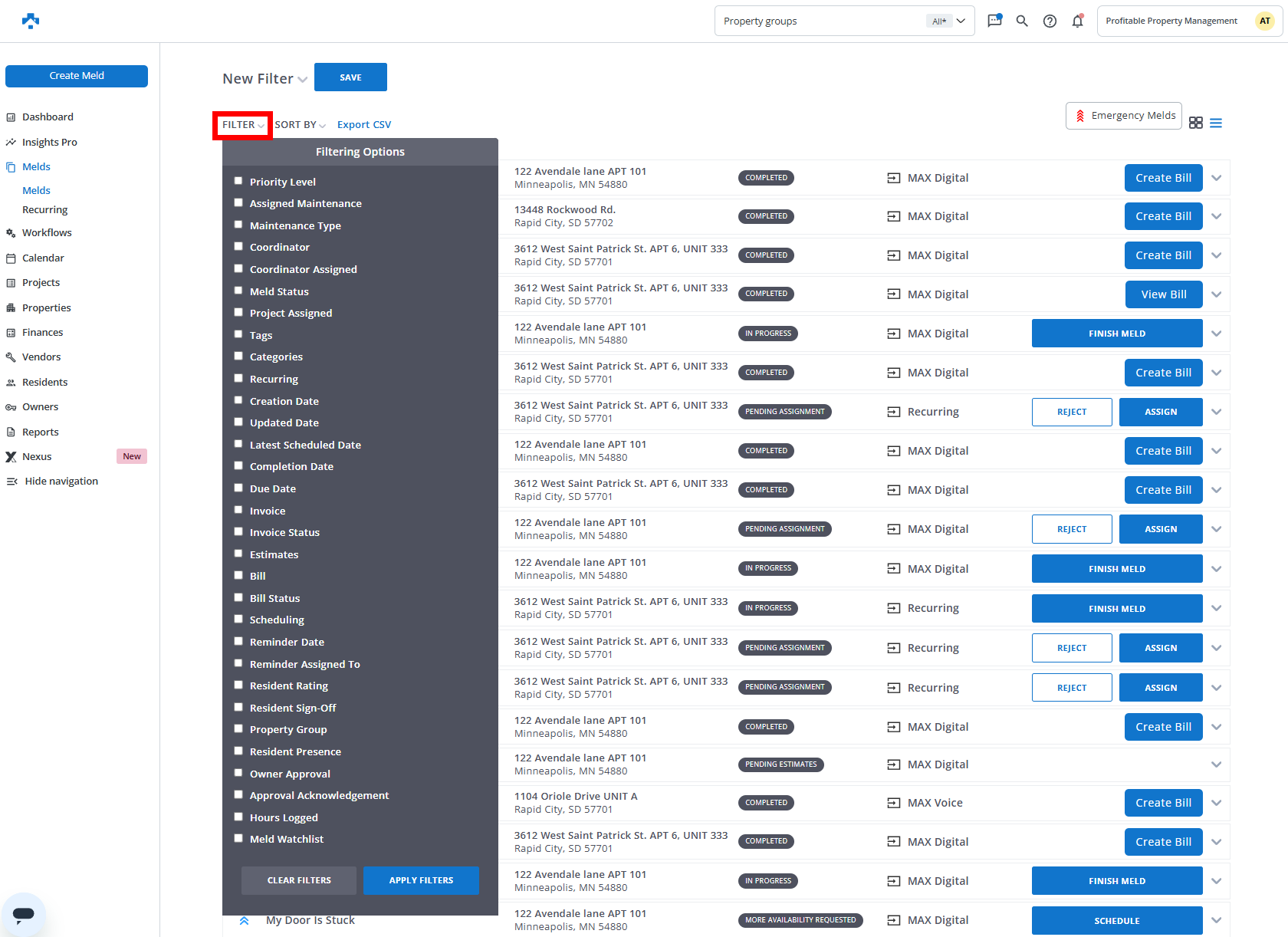 - Filters Melds according to whether or not they have an invoice attached via Property Meld's Invoicing feature.