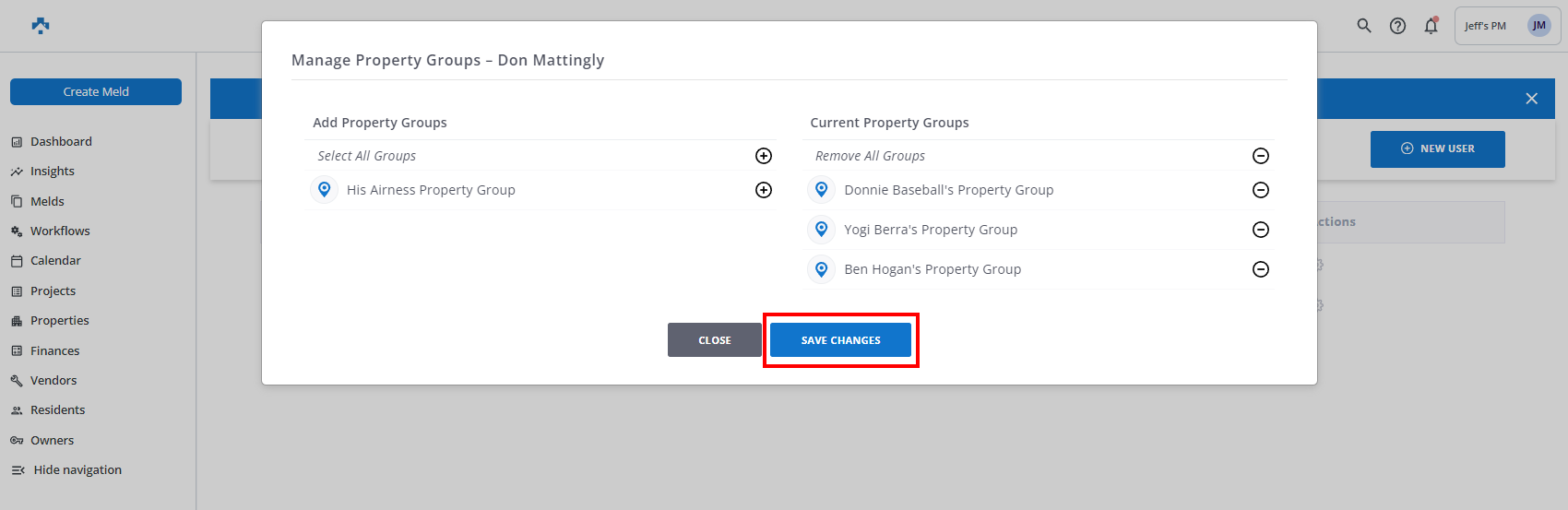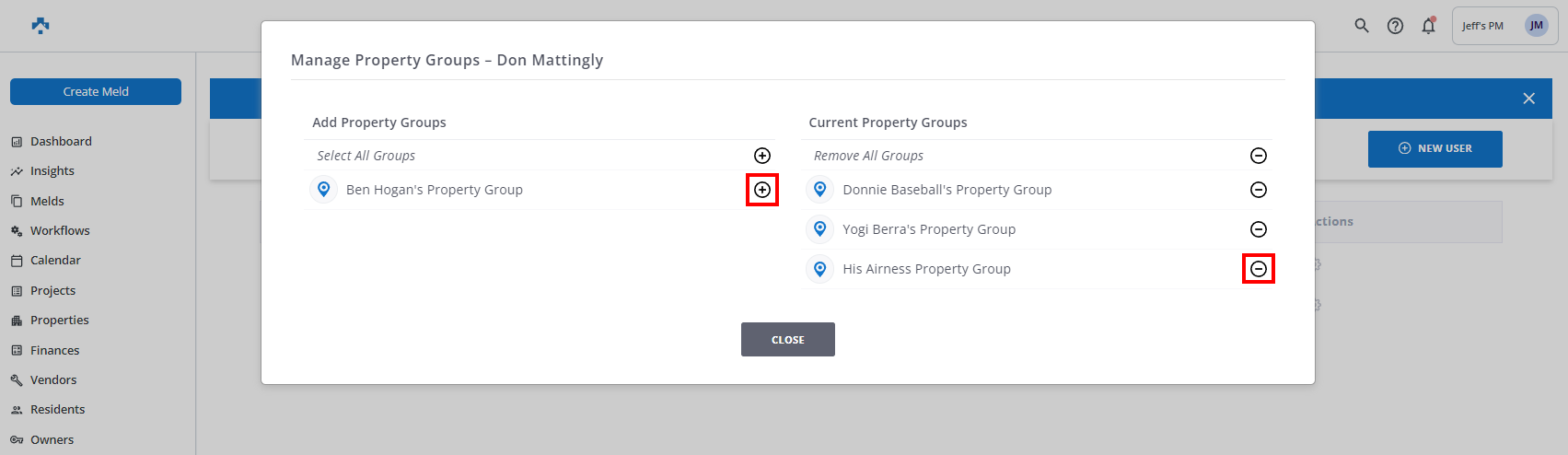 NOTE: Once property Groups are created, users will only be able to see information related to the properties in the property groups they're assigned to. This includes properties, units, Melds, resident ratings, invoices, and expenditures.