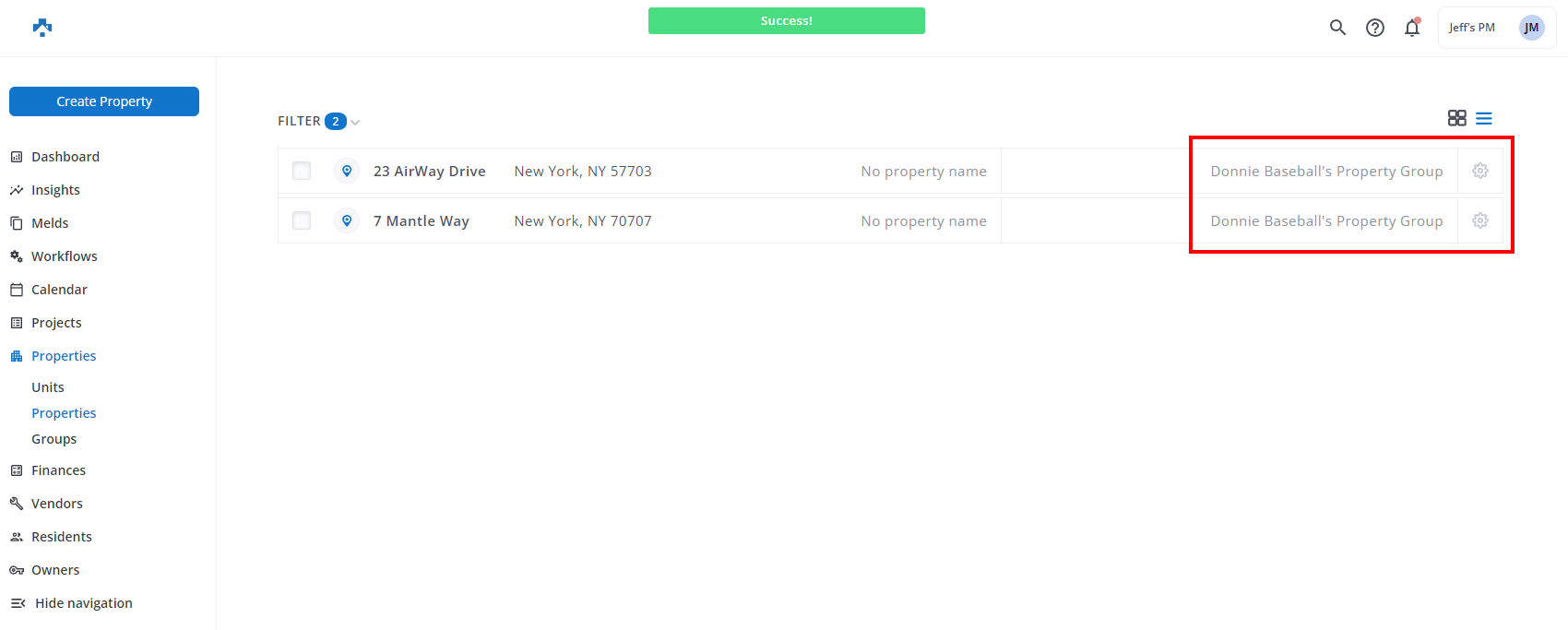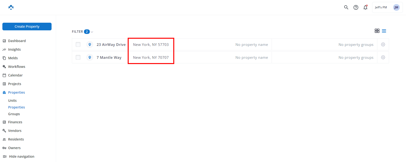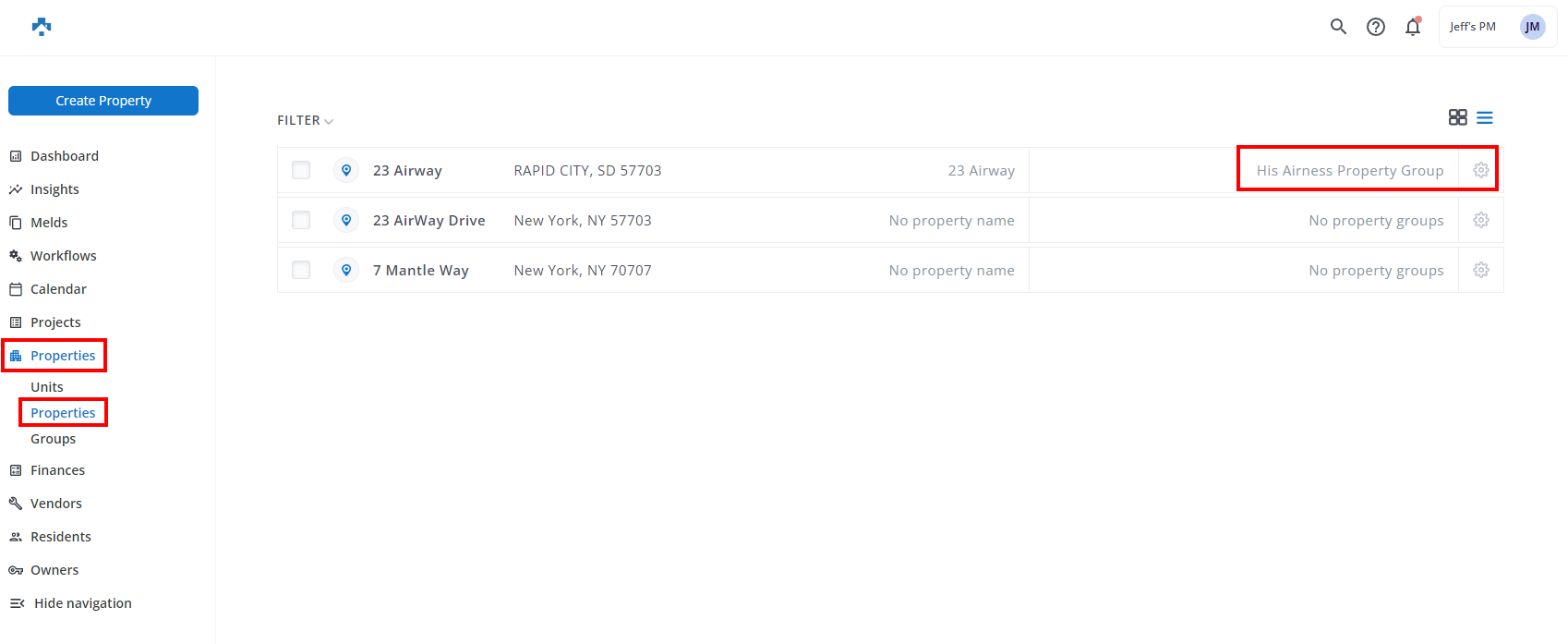 Click FILTER to filter by Properties needing to be assigned to a Property Group. In this example, Properties in New York, NY need to be assigned to a Property Group.
