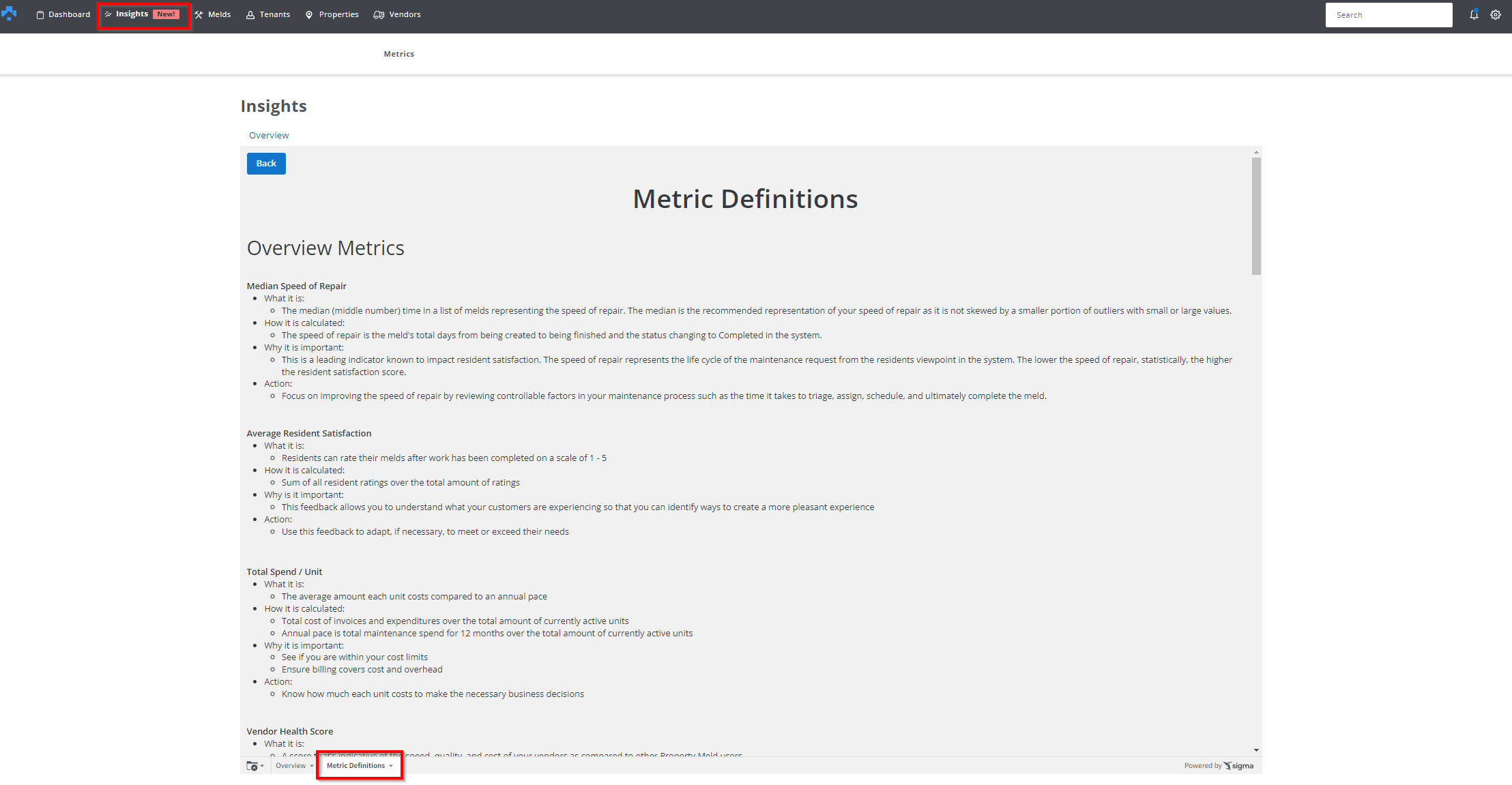 Click Insights and then Metric Definitions.