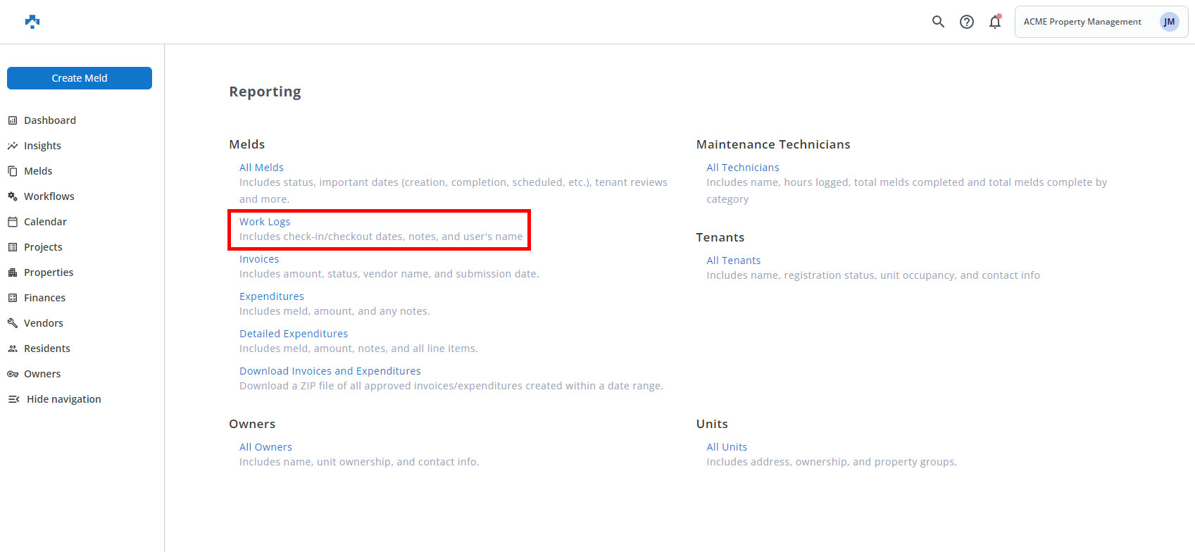 Click the Work Logs report, then select the date range that you would like to see the work logs for.