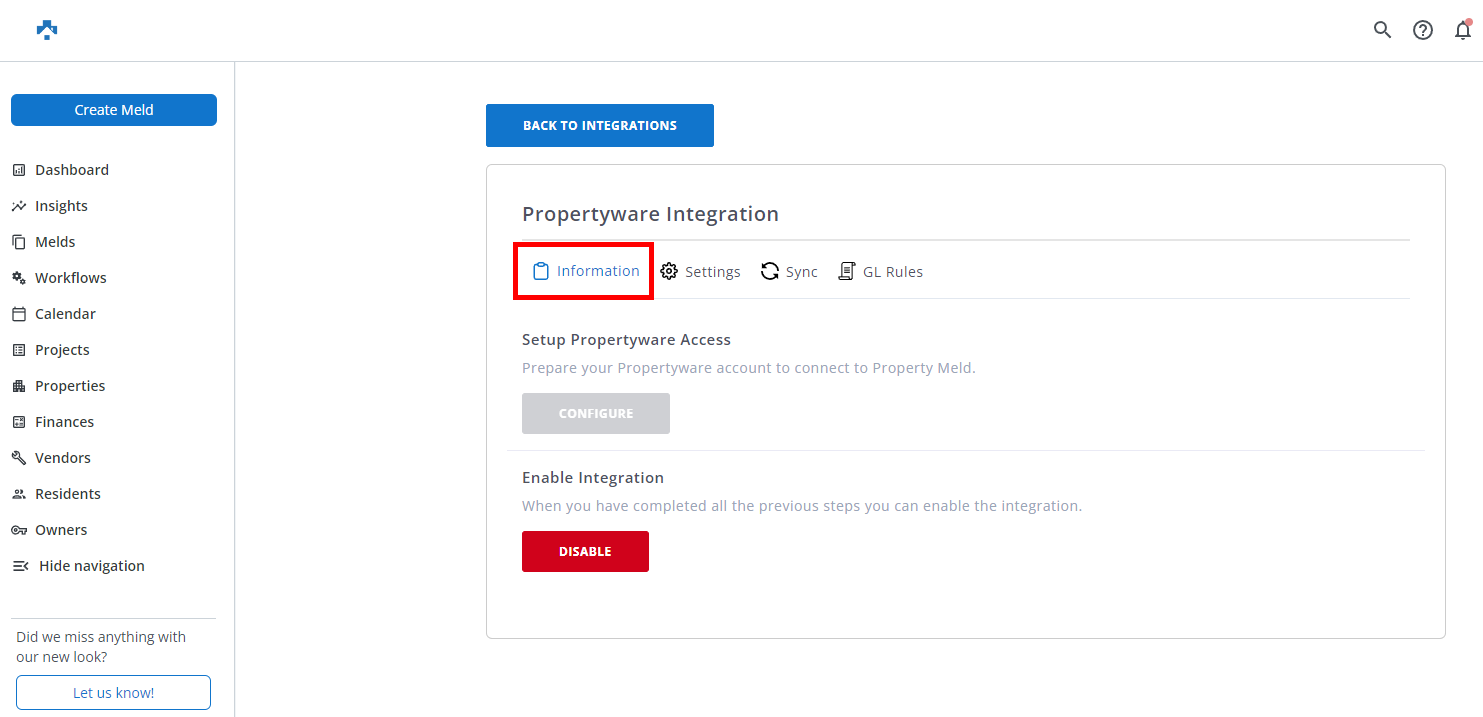 Propertyware Integrations are not available to all existing Property Meld accounts because there are specific requirements that need to be met by the Customer.