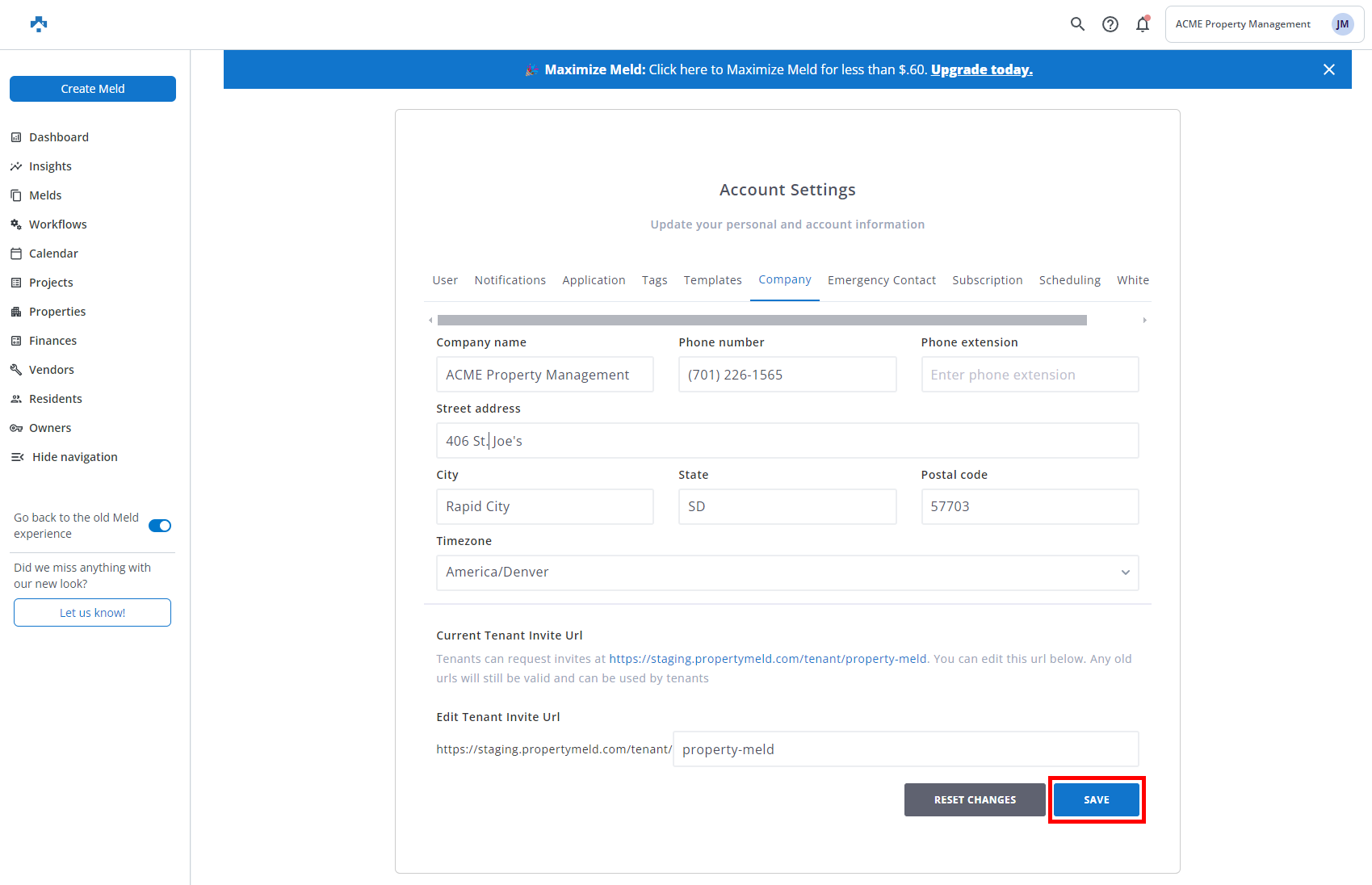 This information is shown on Vendor Invoices generated by Property Meld.