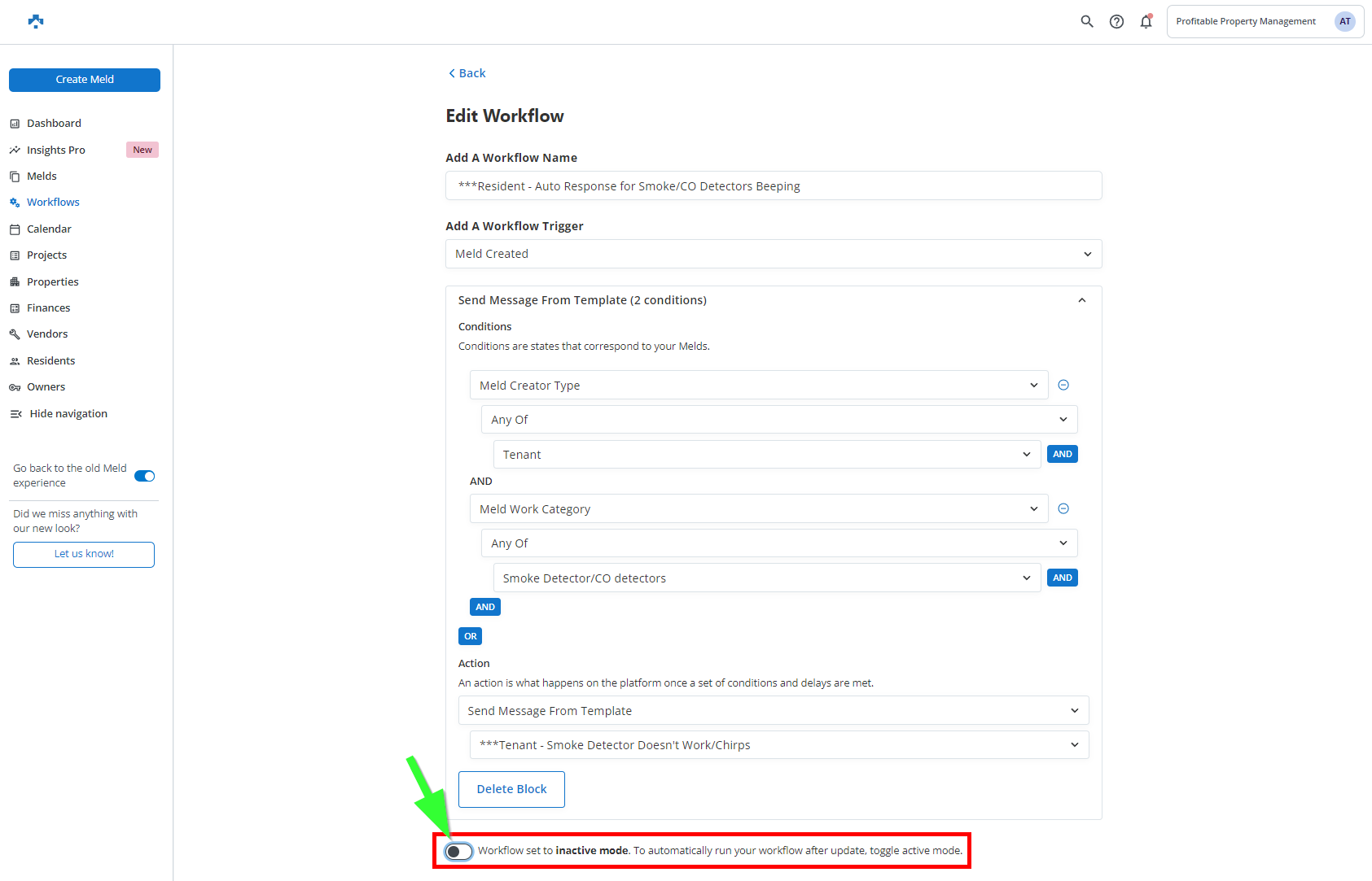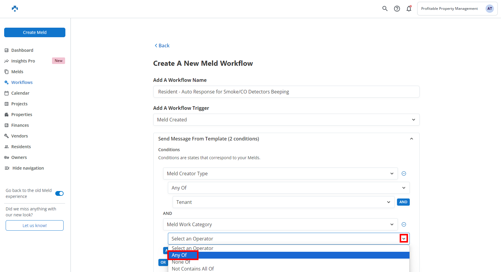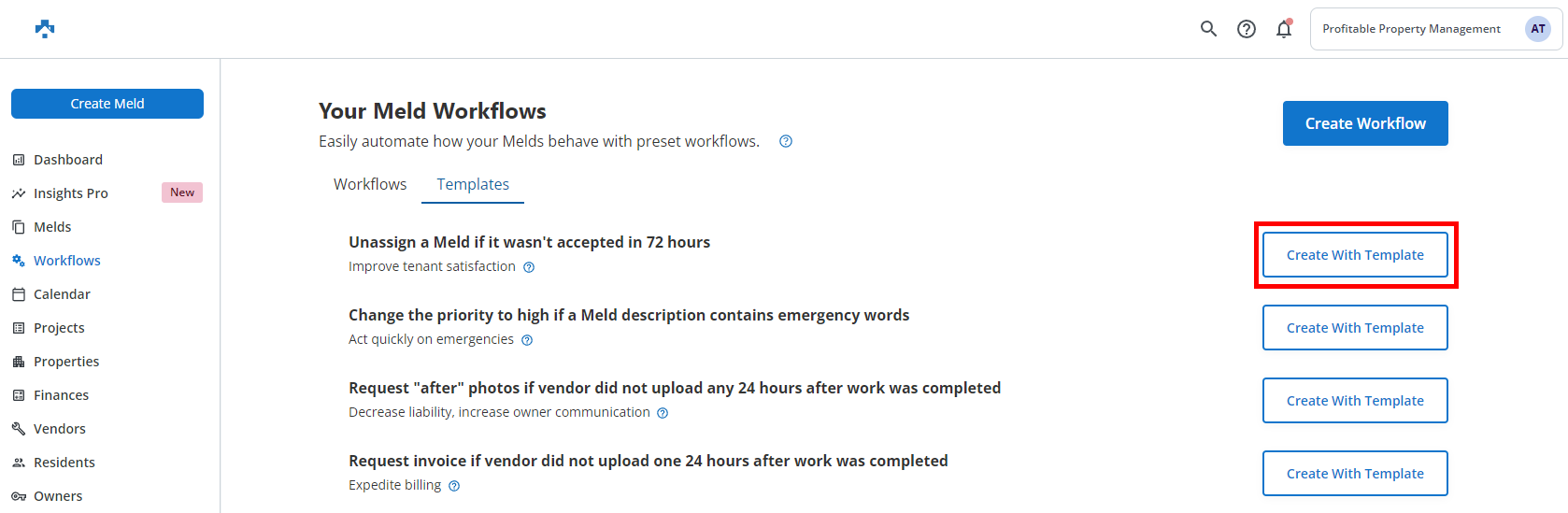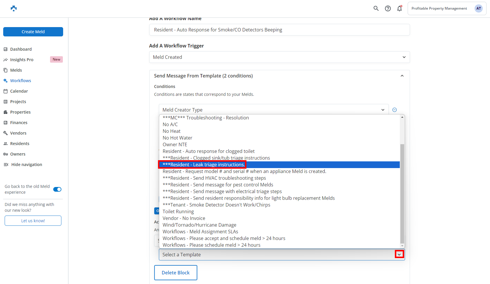 Meld Workflows are a way for property managers to easily automate how Melds work. Workflows are designed to help your team move faster and automate manual tasks that are required during the Meld process.