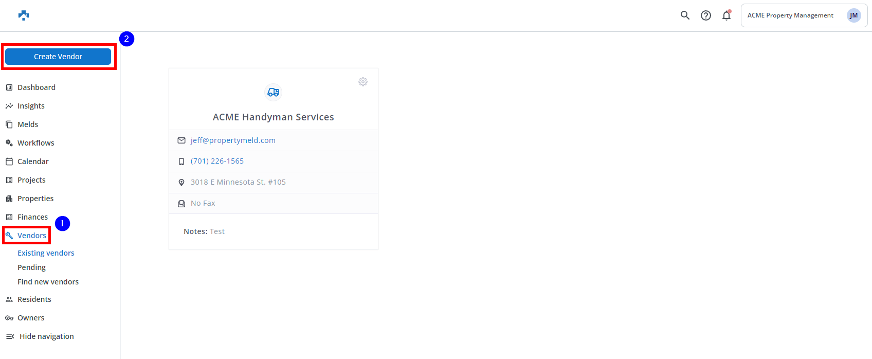 Click Vendors and Click Create Vendor.