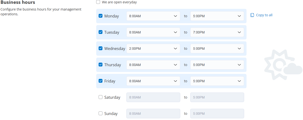 Make sure your business hours are correctly configured in Property Meld’s Emergency Settings