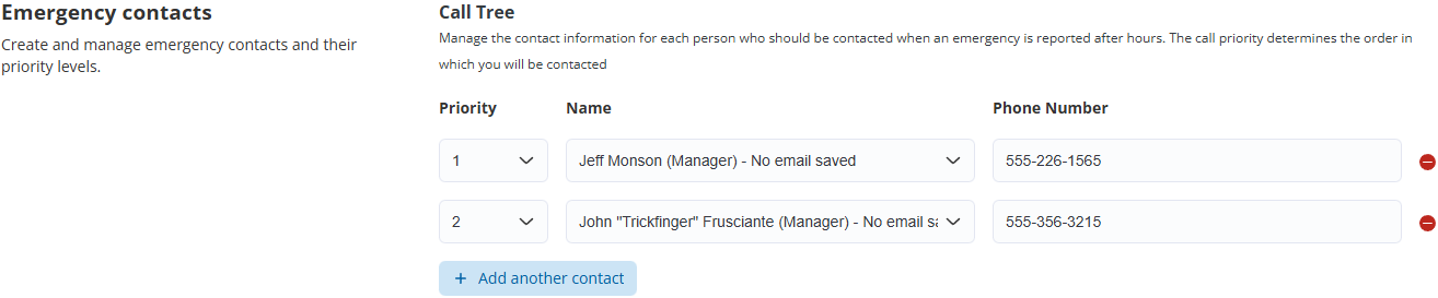 Set your emergency call tree in order of escalation.