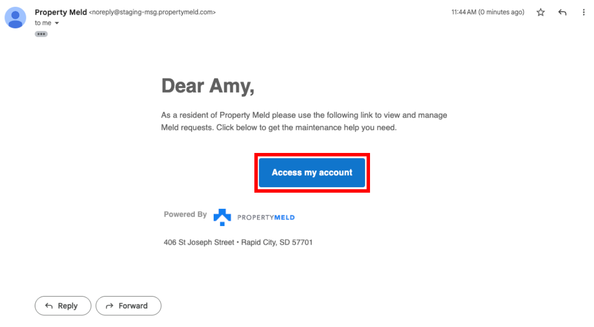 Magic Link gives residents a fast, secure way to access their Property Meld account; no password required. Instead of signing in with a username and password, residents receive a one-time access link sent to their email. Clicking the link logs them in instantly.