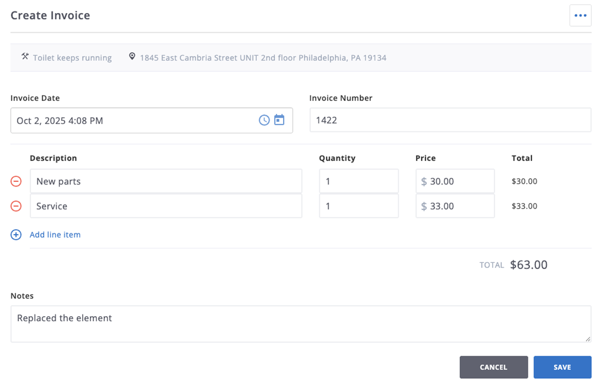 (Insert Screenshot 4: Property Meld Create Invoice example)