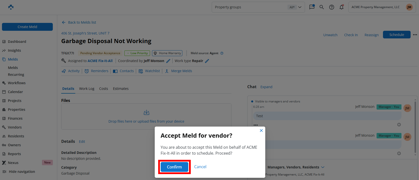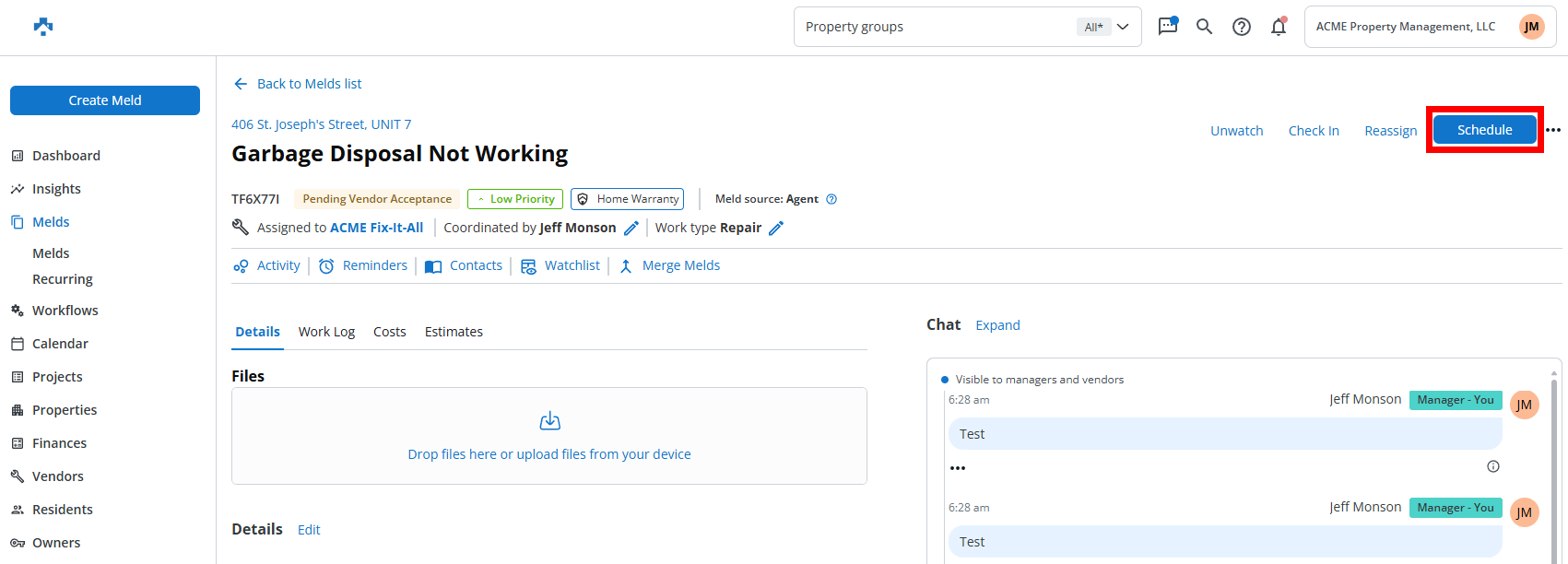 Property managers now have the ability to accept and schedule Melds on behalf of vendors. This feature helps eliminate delays, keeps work moving, and ensures better coordination across teams.