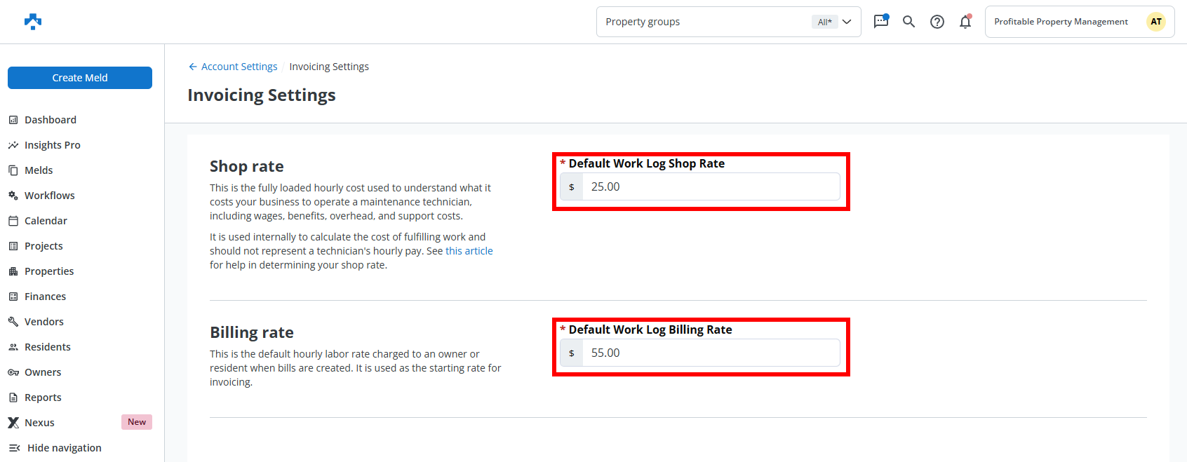 Set your default Shop Rate and Bill Rate