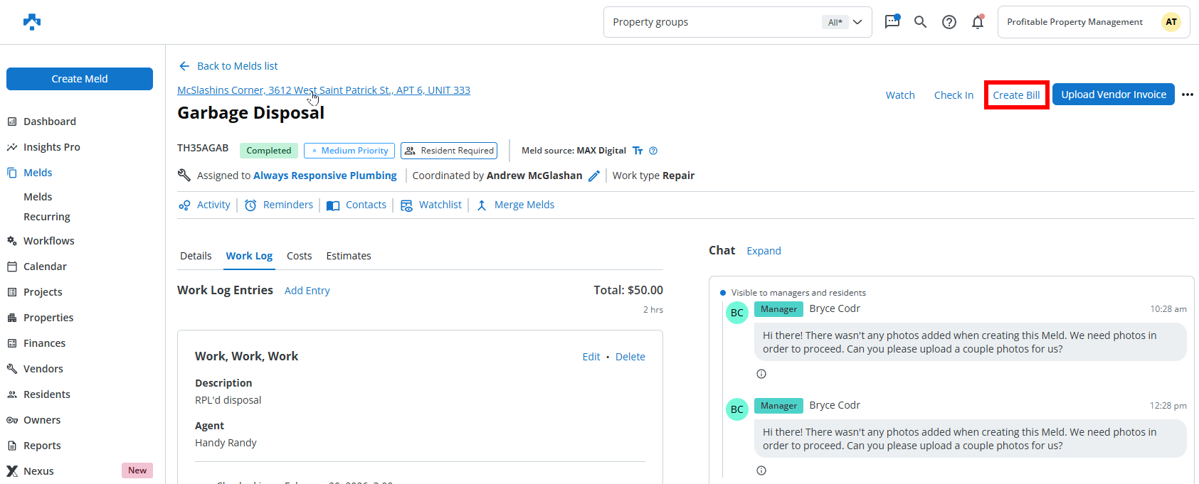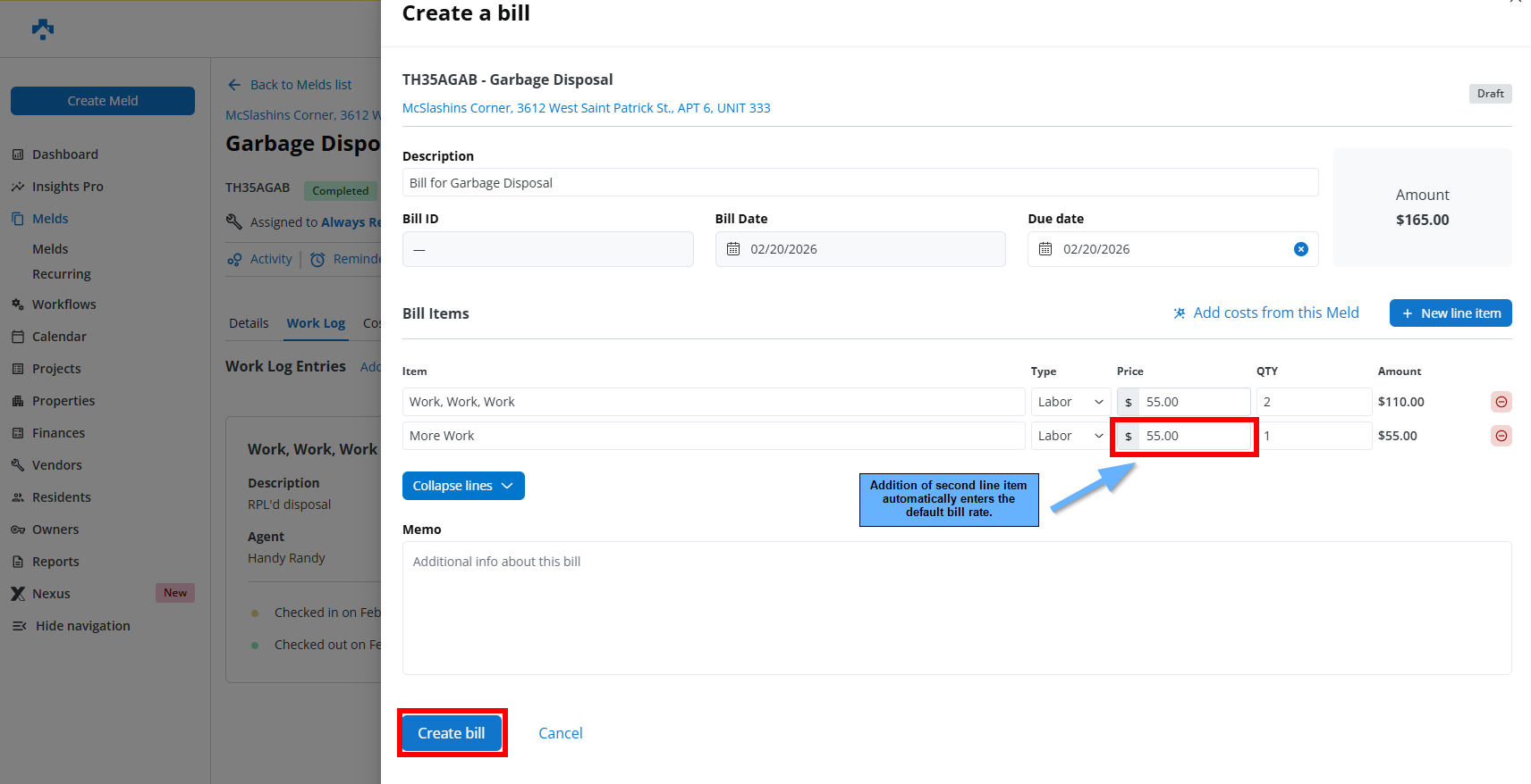 Select Create Bill to open the billing wizard.