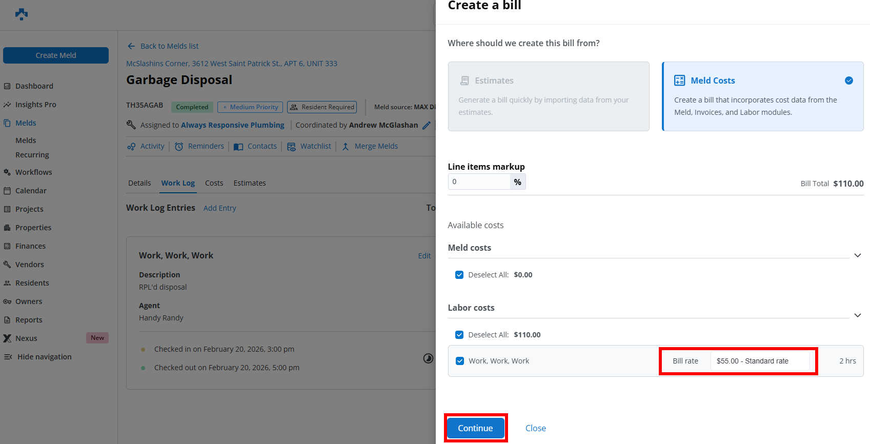 Confirm the labor line item uses your Bill Rate by default.