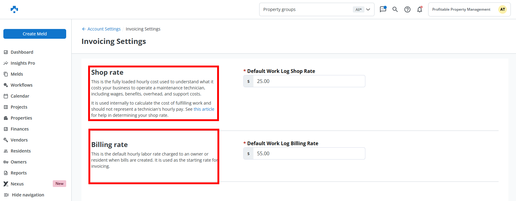 Shop Rate and Bill Rate let you set default labor pricing for invoicing. Shop Rate represents your internal cost of doing business, and Bill Rate is what you charge (and what will populate on bills by default).